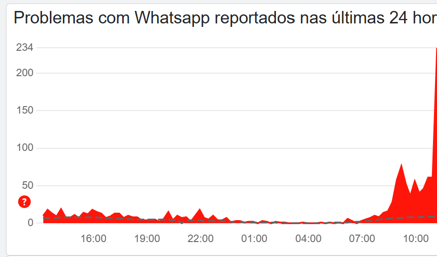 A página do Downdetector, que detecta instabilidade em diversos serviços online, mostrou um pico de mais de 200 reclamações relacionadas ao WhatsApp por volta das 11h (horário de Brasília):